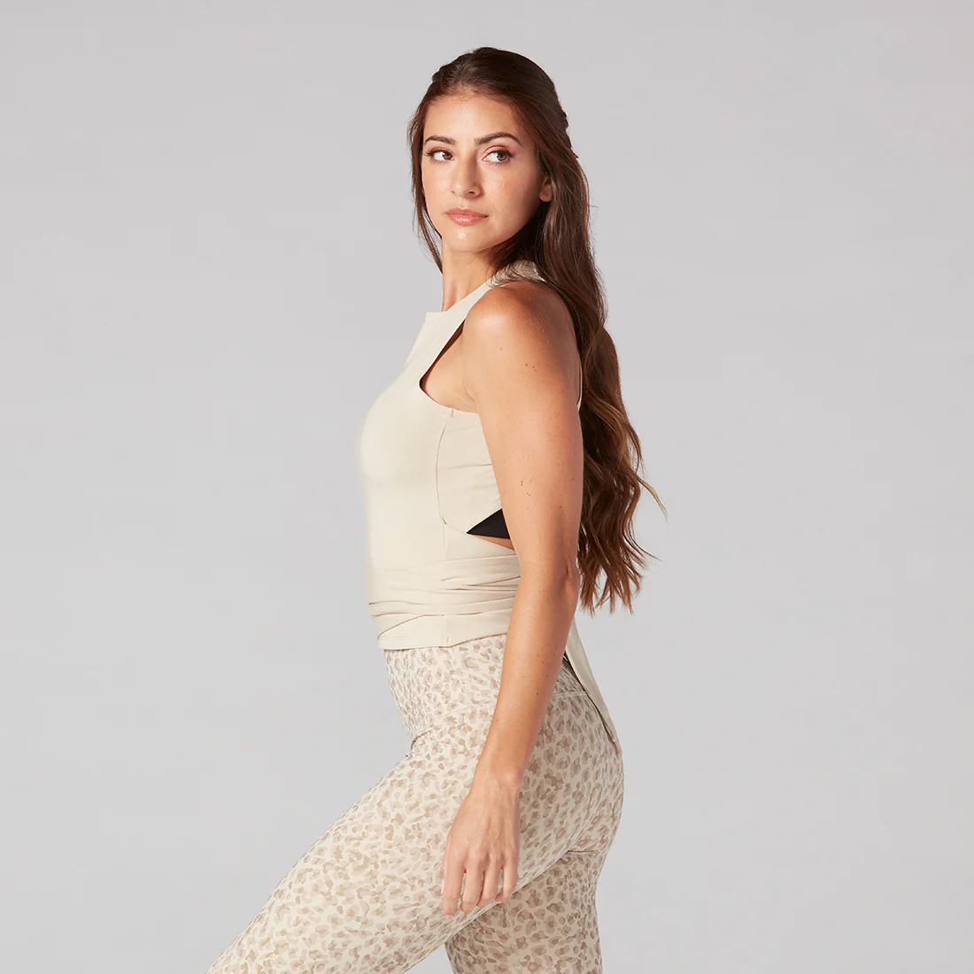 Para esos días que requieren algo un poco diferente... incluso extraordinario... tenemos la polera Wrap Around Tank. Con una silueta ajustada, un cuello redondo y lazos cruzados ajustables que se pueden amarrar en la parte delantera o trasera, esta polera sin mangas está lista para el estudio, la calle y todo lo demás.